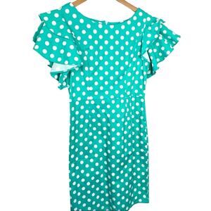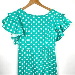 Mint Green Polka Dot Dress Ruffle Sleeves XXL