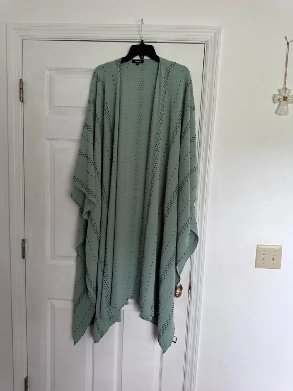 Soft mint green knit rauna with small dotted texture. Lightweight and breathable. Neutral, versatile color for layering. Casual yet polished look.