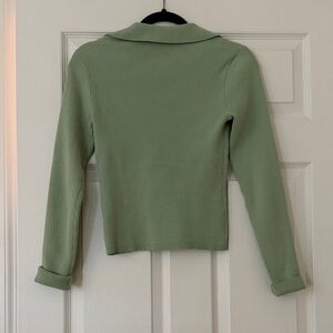 Stylish sage ribbed sweater/top with a chic collar. Perfect for versatile wear.