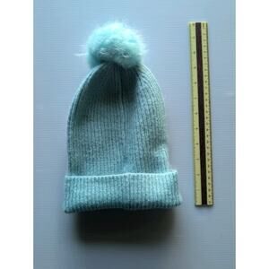This is a New Without Tags (NWOT) mint green ribbed knit beanie, featuring a soft, coordinating pom-pom on top. The hat is new, never worn, and in flawless condition—it is missing the original paper retail tags only.