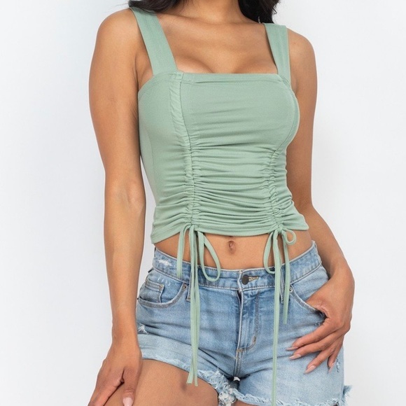 Adjustable front ruched with string square neck summer casual crop top