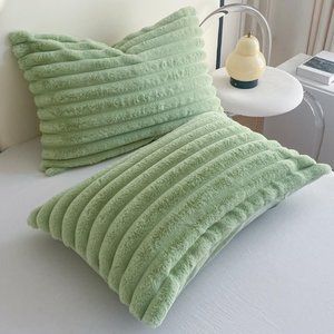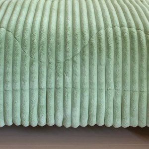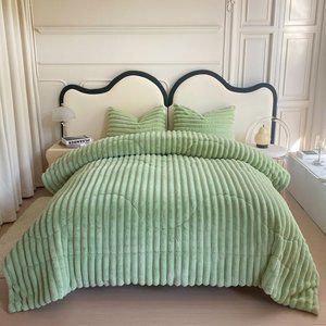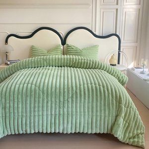 Mint Green Soft Faux Fur Bedding Set Striped Comforter Shams King Size Bed New