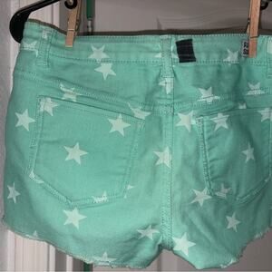 Stylish mint green shorts featuring a playful star print on one side while reversible to basic mint green pattern on inside. Perfect for casual outings, a patriotic event, or backyard barbecue. Add a touch of fun to your wardrobe and flip inside out for an entirely different occasion.