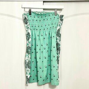 Mint green strapless dress by Urban Renewal (sold at Urban Outfitters). Elastic chest/waistband. Size S/M and will stretch to fit medium comfortably. I'm petite and this is a tad loose on me. There is a TINY red mark (picture is included). Otherwise in excellent condition.