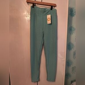 Stylish mint green leggings with a textured design. Perfect for workouts or casual wear.