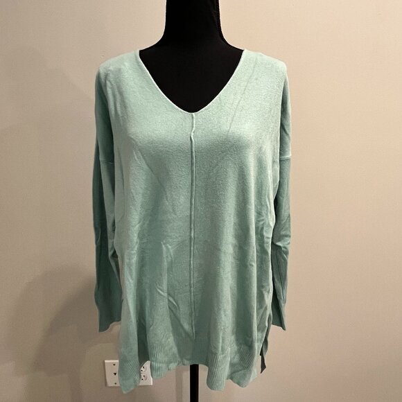 Mint Green V-Neck Sweater - Size Small BUT RUNS LOOSE/BIG (will fit Medium)-