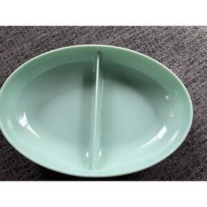 Mint Green Watertown Lifetime Ware Divided Oval Serving Dish 10" Vintage USA-Mad
