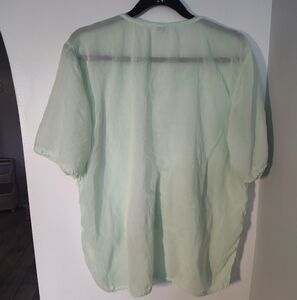 Elegant mint green women's top with delicate lace detailing. Perfect for a casual day out or a relaxed evening. Soft and comfortable fabric for all-day wear.