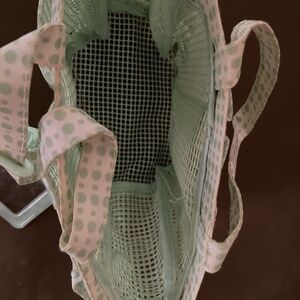 waterproof toiletry with several compartment to bring inside dorm bathroom like new except pipping in handles..check photo for accurate description.