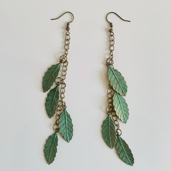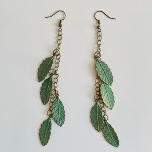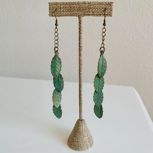 Mint Green~Bronze Quad Leaf Chain Earrings