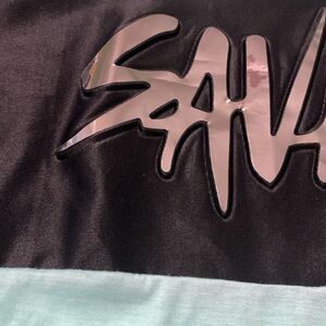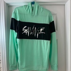 Lightweight hooded Trendy mint green topfeaturing a bold 'Savage' print. Stylish black stripe across the chest. New & Smoke free & Pet free home. See ALL photos for complete description/details.