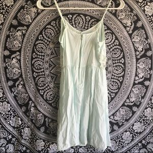 I purchased this mint, floral lace dress for $24. It's super cute, about mid-thigh in length. It is practically brand new after only one wear. It's a size 4, but fits like a 2. The material is light and airy, and the dress very comfortable to wear all day. It has adjustable spaghetti straps and is not lined. I am selling it for $20.
