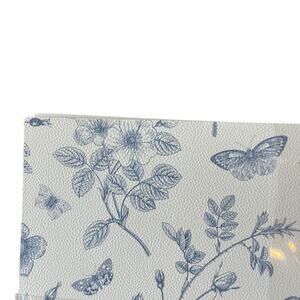 NEW Mint & Ivy Faux Leather Placemats 13x18 Blue & White Floral Butterfly Set of 4