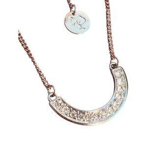 Mint Mongoose Silver Tone Necklace Crescent Half Circle Clear Rhinestones Adj
