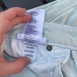 Mint/green colored Verdugo ankle style jeans from the brand Paige. In good used condition. Slight stretching seen in the second picture above. Willing to take offers! Feel free to ask for any details.