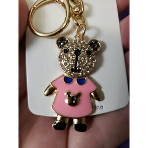 Mint Pink Bear Rhinestone Purse Charm Key Ring Chain Gold Tone New