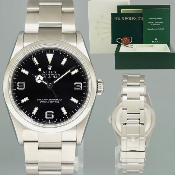 Mint! Rolex Explorer Mens Black Dial Oyster Watch
