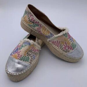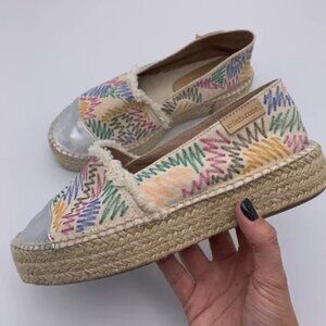 Mint & Rose Espadrilles Sz 6 Wicker Metallic Cap Toe Zig Zag Print Shoes flats