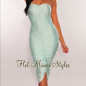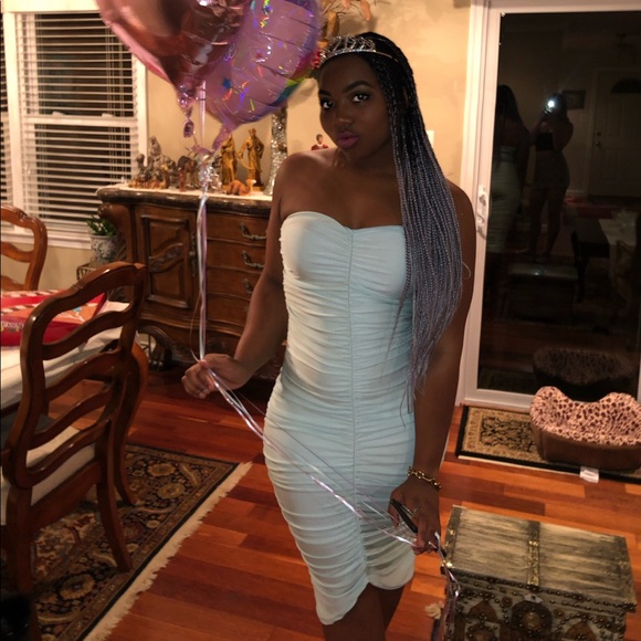 Only worn once, color is mint, (the lighting in the first photo is making it look white but it is NOT; can post more photos if needed.) fits very nicely and makes you feel slim thick! 82% Polyester 18% Spandex