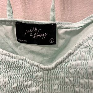 Super cute mint top! Bought without trying on and took tags off and it didn’t fit :( Super super cute tho! Never worn! NWOT :) :) :)