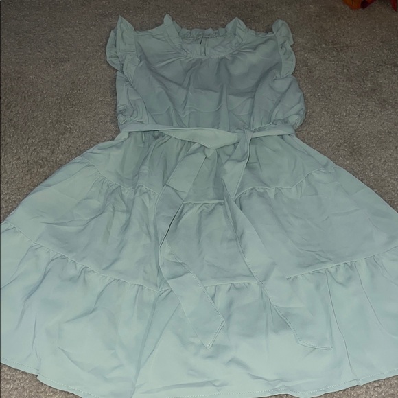 Charming mint dress with ruffle details and a tie waist. Size 130 a approximately 7