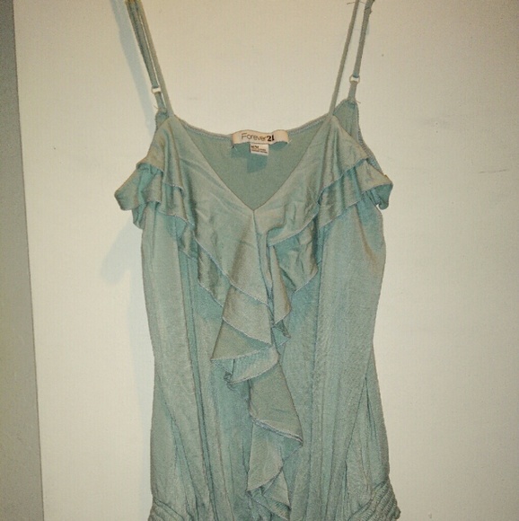Mint Ruffled Spaghetti Tank Top