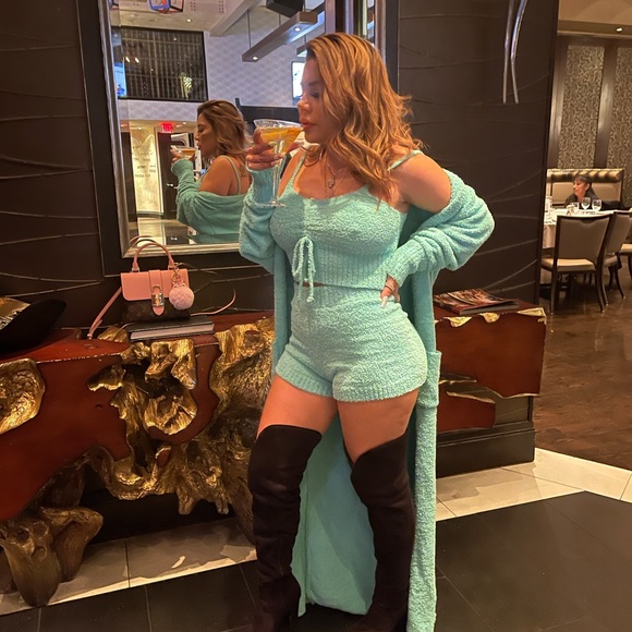 Beautiful set. Wore once. For a couple of minutes. Perfect for spring or summer nights. Small but fit medium