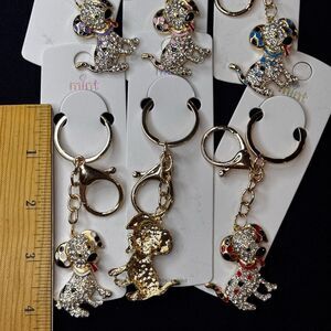 This brand new dog keychain is available in champagne, clear, pink and blue sparkling rhinestones. Use as fun key chains purse charms or zipper pulls!