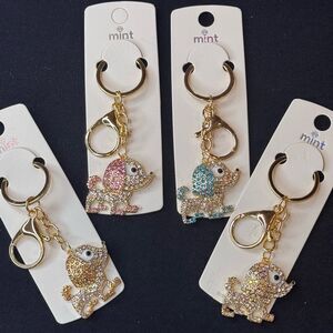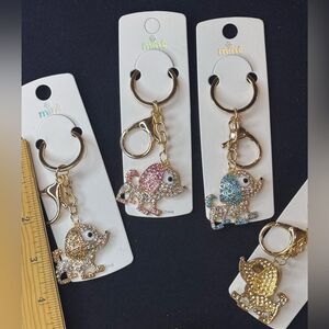 This brand new dog keychain is available in champagne, clear, pink and blue sparkling rhinestones. Use as fun key chains purse charms or zipper pulls!