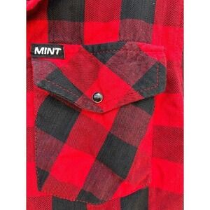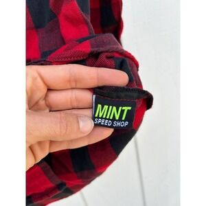 Mint Speed Shop Red Buffalo Plaid Button Snap Flannel Shirt, Size S