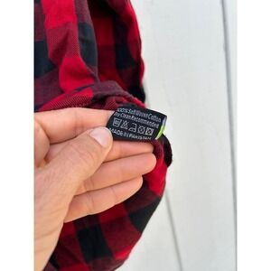 High quality red and black flannel shirt- buffalo check. 100% cotton flannel, pearl snap buttons. Good quality flannel shirt built to last.
