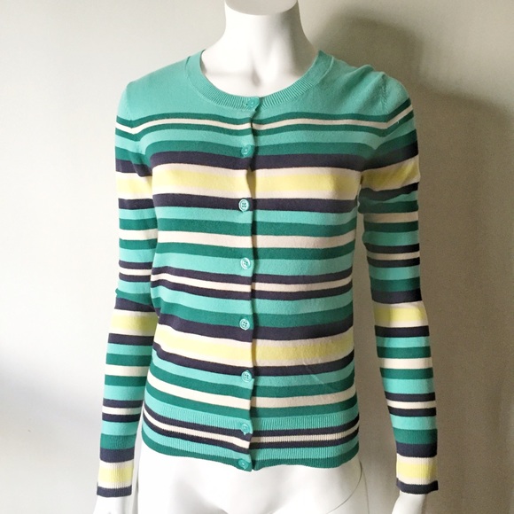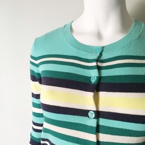 Mint Striped Cardigan with Yellow & White Stripes