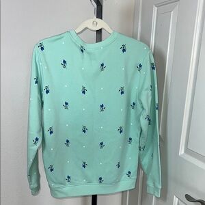 Mint sweatshirt featuring a blue floral pattern. Ideal for casual outings.