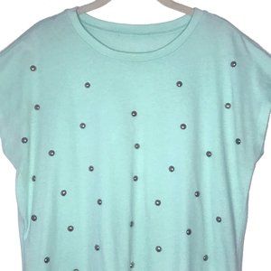 Cute mint color t’shirt with silver grommets.