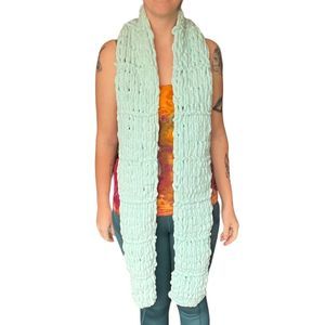 Long and soft fuzzy light teal / mint chenille, handmade scarf