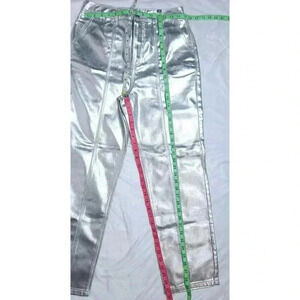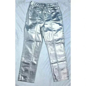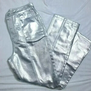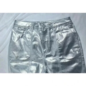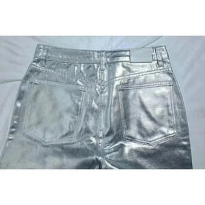 Mint Velvet Luxury Metallic Silver High Rise Leather Pants Size 10R