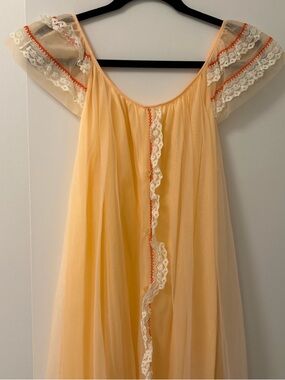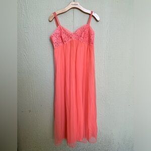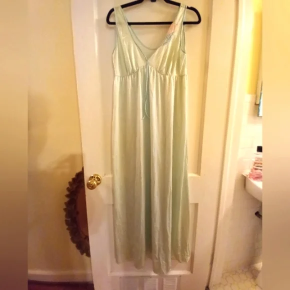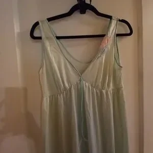 Mint blue vintage medium maxi nylon nightgown with flower
