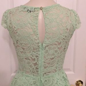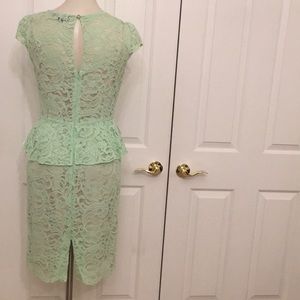 Mint green Tahari lace peplum midi dress