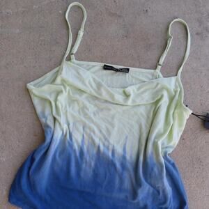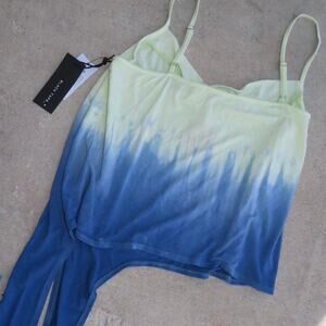 mint green, blue gradient, asymmetrical, tank top, adjustable straps, tie hem, vibrant colors, casual style, summer wear, new with tags