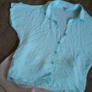 Mint green blouse by Charlotte russe..has cut out on shoulders. A medium, light weight cotton blend