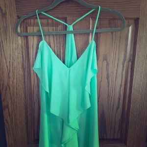 This elegant top is a slightly longer length to or below butt. Would be cute with white skinny jeans for spring/summer.