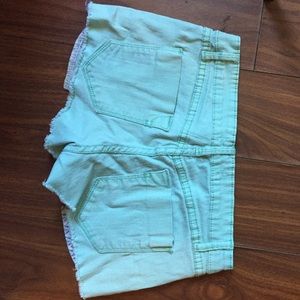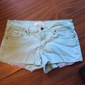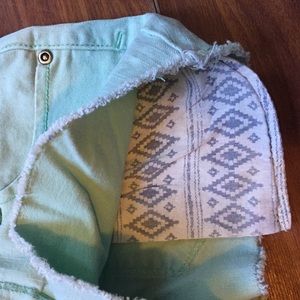 Mint shorts with tribal print pockets. Worn a couple of times. No damages.