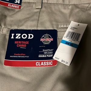 I ZOD size 36 waist 34 length double pleaded comfort Flex smooth touch, 100% cotton classic