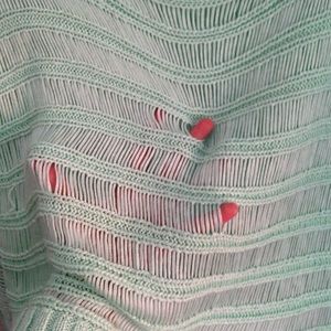 It's a mint slouchy sweater, crocheted or something so it has gaps in it so you'll need to wear a tanktop under it