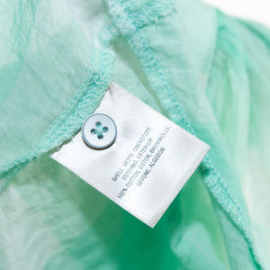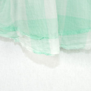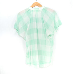 Mint green, white large check plaid Maeve, Anthropologie button down short sleeve blouse. Raw hem on bottom, sheer with flutter sleeves. EUC with no major flaws.