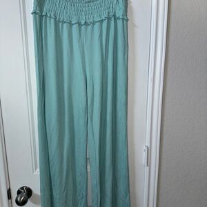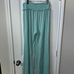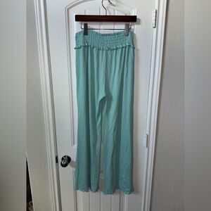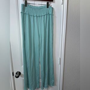 Chic aqua pants with textured design. Ideal for relaxed style.