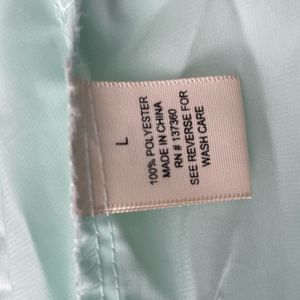 Mint green, long sleeve, button down blouse. Gold buttons, has belt loops. Size large, great condition.