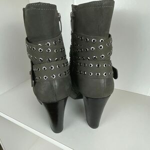 Mint Velvet Leather Grommet Accent Ankle Boots 39 Gray