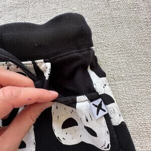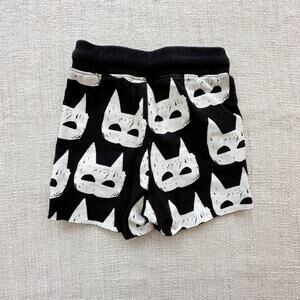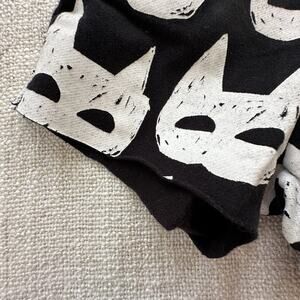 Excellent condition, Australian brand Minti black and white cat mask graphic print French terry shorts. Unfinished hem. Pockets. Size 2. No holes or stains. Smoke free, pet friendly home.