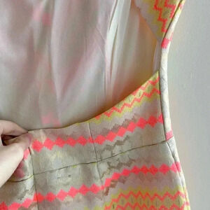 Minuet Aztec Print Neon and Gold Cocktail Dress, Open Back Dress, Medium